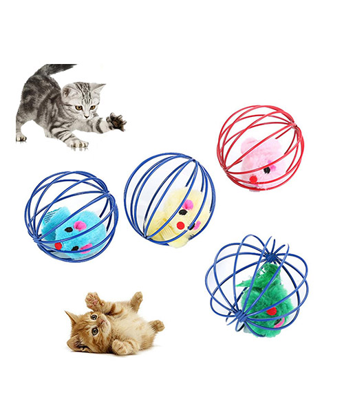 A fun interactive cat toy featuring a mini mouse inside a cage‑style ball that rolls and encourages chasing, batting, and playtime to keep cats mentally and physically engaged.