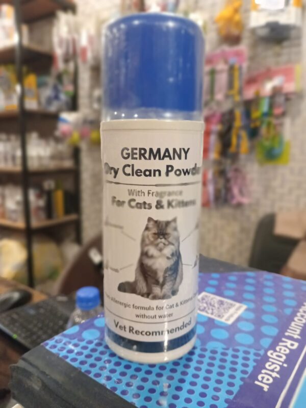 A convenient dry clean powder that refreshes your cat’s coat without water — absorbs excess oils, neutralizes odors, and leaves fur soft, clean, and pleasantly fresh.